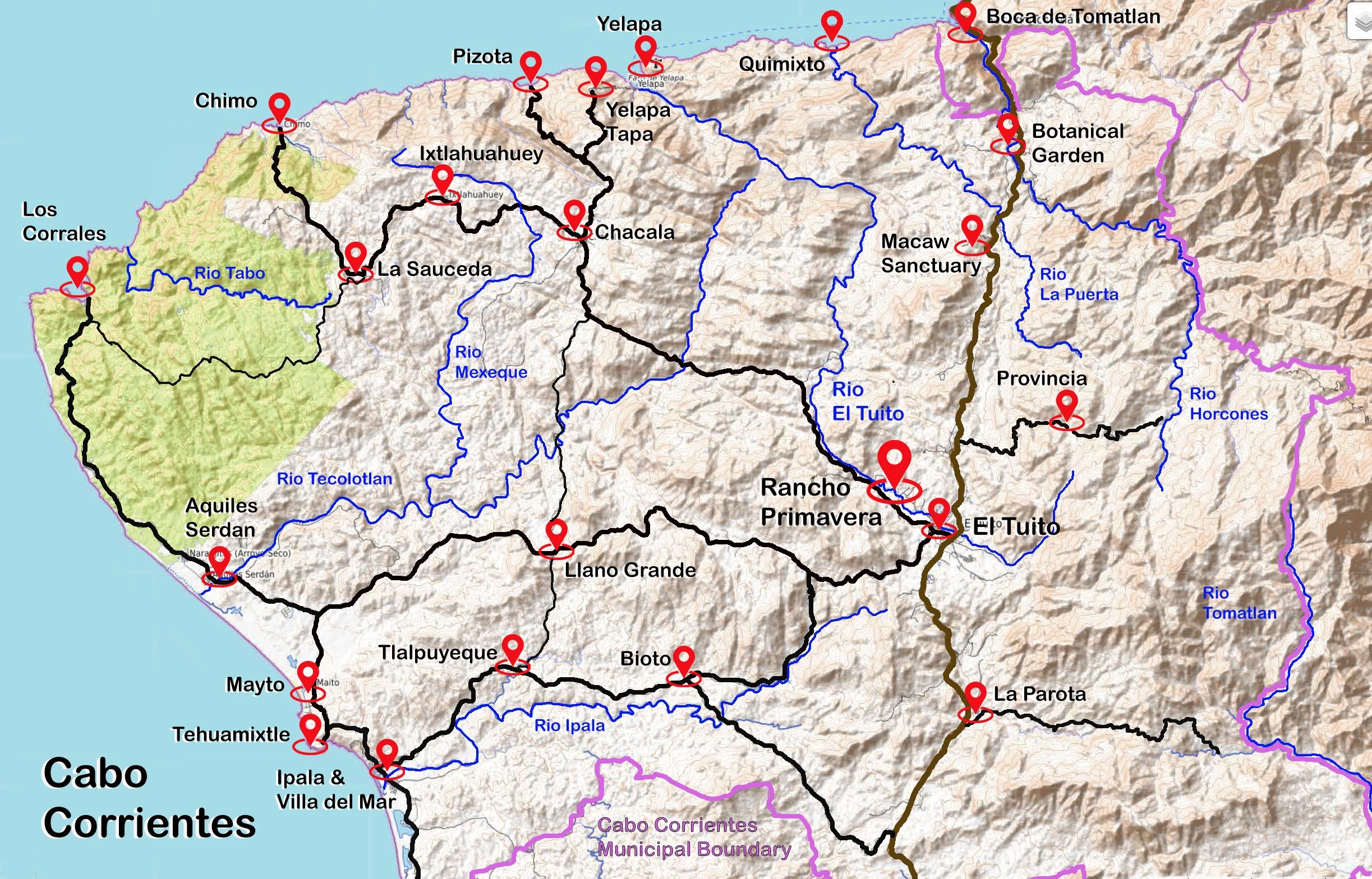 The semi-deciduous forest at Rancho Primavera sits between the pine-oak forest of the southern Sierra Madre and the coastal thorn forest and seashore of the Costalegre. As a region, Cabo Corrientes boasts 34 eBird hotspots and an amazing 488 species reported. This figure represents nearly 45% of the species reported for all of Mexico! This map features just a handful of the region’s best birding spots, and the best way to explore these rugged backroads is with seasoned local birders. See the guiding info below, and let us show you the best of Cabo Corrientes!